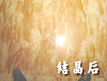 石材在使用若干年后,表面会老化,严重影响美观,晶面硬化处理就是经过粉磨剂研磨,使化学药剂与石材中的钙成分发生化学反应,在石材表面形成一层新的晶化物质,防止污渍渗入石材内层,增强抗磨性,使石材折射出天然的光泽,以达到一定的硬度和亮度。